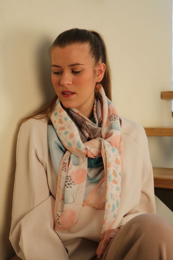 En effet, avec ses 4 motifs distincts, vous pouvez porter votre foulard de 4 manières différentes en fonction du motif que vous souhaitez mettre en avant.